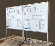 Информационный стенд оргсхемы содержит оригинальный логотип компании и представляет индивидуальную структуру подразделений с охватывающим цветовым выделением блоков. На месте установки стенда используется внешняя подсветка, что создает более привелекательный вид. Макет данной организующей схемы выбран заказчиком исходя из оптимального варианта оформления (который уже несколько лет изготавливается Визиком-Арт), но содержит изменения с учетом собственной специфики компании.