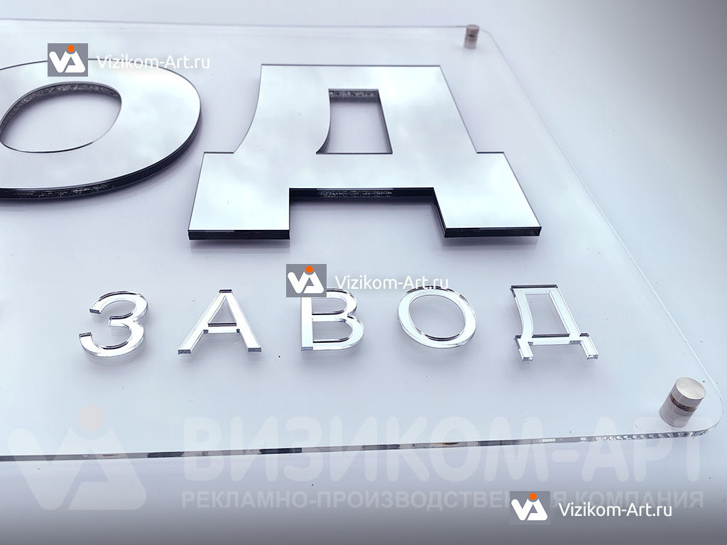 - Накладные элементы логотипа изготовлены с помощью лазерной резки из цветного и зеркального акрила с подложкой для увеличения толщины (объемности) до 8мм.